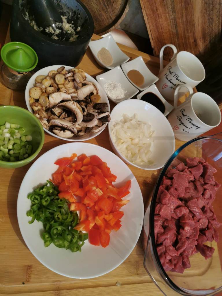- o lingura amidon de porumb pentru ingrosarea sosului