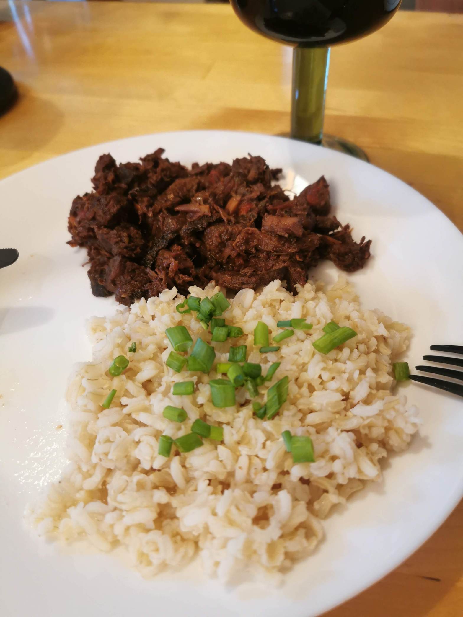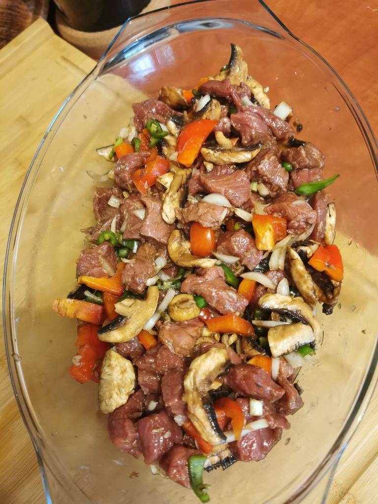 Se amesteca toate ingredientele intr-un bol mare, se aseaza intr-o cratita corespunzatoare si se lasa pe foc mic timp de 8 ore. Nu este o gluma, acesta este timpul de preparare pentru ca vita sa se fragezeasca.